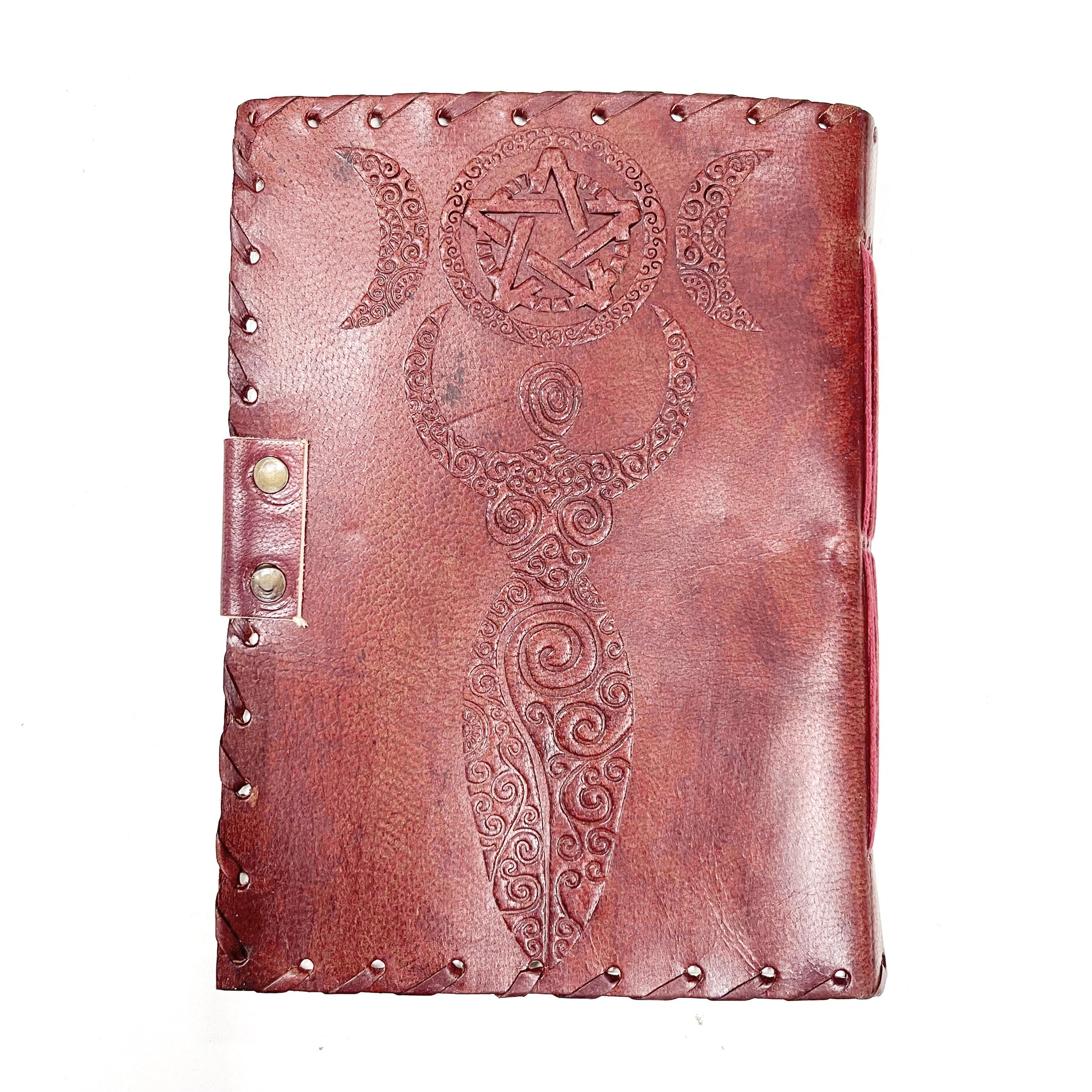Leather Journal - Triple Moon Goddess with Black Onyx