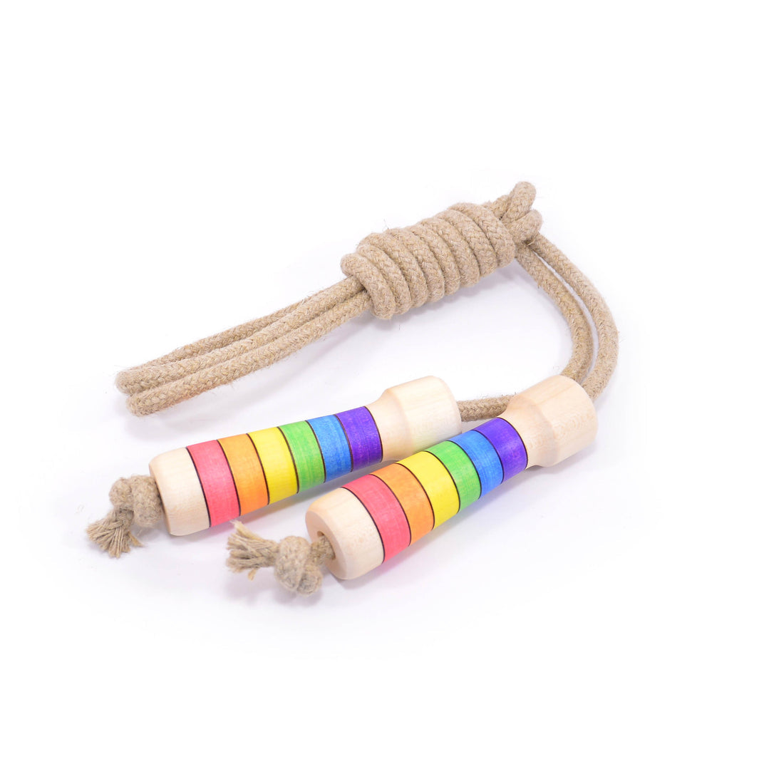 A classic outdoor toy to encourage kids to be active while having fun. This beautiful wooden handled skipping rope is perfect for active play. Skipping helps with balance, coordination and concentration. Mader Skipping Ropes come with a beautifully coloured wooden handle