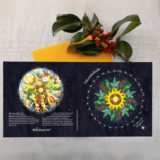Want to use the Advent Calendar in your Toverlux Lamp or Frame? Use scissors to cut on the fold in the middle of the card and place the front inside a Toverlux Lamp or Frame. You can also unfold the calendar and set it before a (LED) tea light or in front of your window sill.